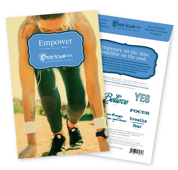 Created by Conscious Ink. Each package contains 8 different Manifestation Temporary Tattoos.