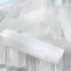 We offer Selenite sticks in 3" lengths and up to ½" thick . This small-shaped stick can be used on crystal grids, placed easily on meridians, spine, forehead, etc. during Reiki or used elsewhere on the body where is it light and barely detectable. It does a powerful job and compares identically with the power of larger stones. Using several on the body during energy work allows the energy to penetrate the healing meridians specifically for power boosts in those focused locations. Use more than one on your crystal grid to invigorate other stones on the grid. Some people make a hub in the center with radiating "spokes" of Selenite sticks sending energy to the sacred geometry grid.