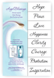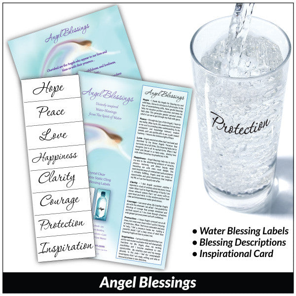 Over half the world believes in angels as helpers and healers. They are the right hand of God coming close to us as we struggle through our lives. This is not a metaphysical belief but a deeply-held spiritual understanding, and they are two different things. Those who are true believers swear that angels are all around us and ready to help when we ask. This is the basis for spirituality — things we feel and know through our hearts and senses. Faith is the key. It is created by a deep sense of love and trust combined. Place Angel Blessings on your water bottle or drinking glass. Each time you see a word, the power of your intention and prayer is renewed, and your wishes are heard by the Angelic Presence. This label collection was inspired by a visit to an angel store. While there, strong messages urged us to create this divine collection of simple, yet profound, blessing words. We believe the Angels who live in the store actually guided the full production from start to finish including the drawing on the package.