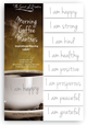 Start your day with positive statements that affirm the highest and greatest good in your life. They are simple to use. Just peel one off the backing sheet and apply it to your coffee mug or cup in the morning. Then "drink" in that thought. Make it your mantra for the day. When you are finished with the last drop of your coffee, take the label and place it back on the sheet. Do the same thing each morning... change your mantra each day and watch your life change!