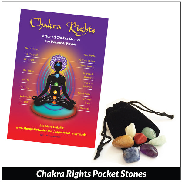 It is the right of each individual to expect certain spiritual rights as they navigate life. The rights correspond to the seven chakras. These stones are attuned to the vibrations of each chakra using the natural minerals that carry and match the resonance of the body area. Carry one stone or a combination of the seven matching the healing or enhancement you wish to achieve. The soft black velvet pouch fits easily in a pocket so the stones can be carried close to the body or place the stones on your altar for gazing, meditation, or a broader practice or healing.