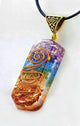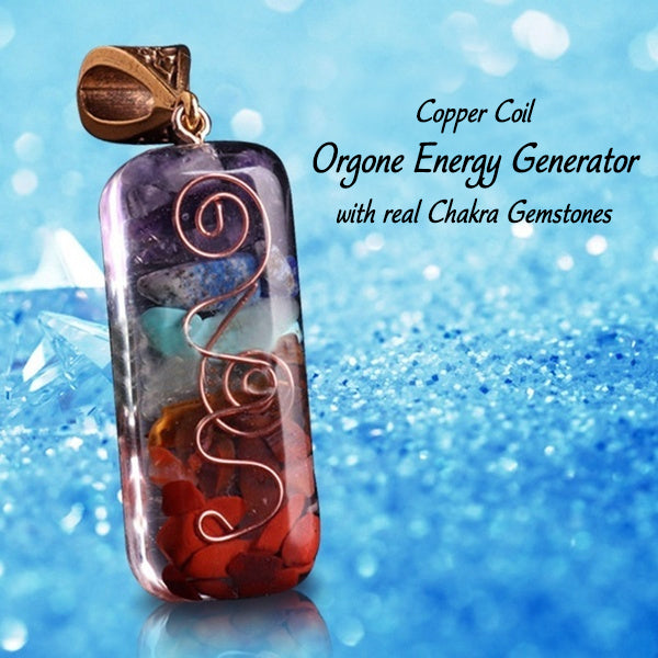 Set up a star array in your magnetic field. This pendant attracts cosmic energy to the wearer and supplies resonant energy to your auric presence. Embedded chakra stones activate the 7 lower chakra centers on the body for balance and wellbeing, plus they activate the 8th chakra or Soul Star with the Orgone energy frequency. Good for meditation and visualization. The top of the copper coil is the attractor, while the bottom of the coils disperse the energy throughout the physical body and space. This pendant has been known to neutralize radiation from small appliances and cellular devices. Made with crushed natural crystal stones in resin. The pendant comes with a black adjustable neck cord.