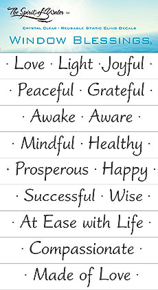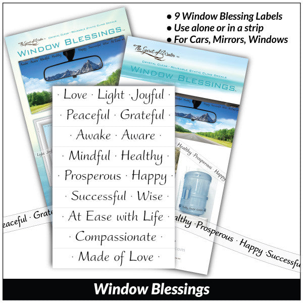 Blessing water has been a tradition started in the early 2000s, but using blessings has been a practice used for thousands of years. When we bless ourselves and others, we are shifting the universe and influencing it with a new thought. Those thoughts have profound effects on our lives and the lives around us. When we use positive words and affirmations in our daily lives we are maintaining a frequency of optimism and trust where all good things can happen. Use these window blessings in your car, home windows, refrigerators, computers, shower doors, mirrors, or more. The silent work is not insignificant. All lives change when the vibration of a powerful word enters our consciousness.