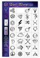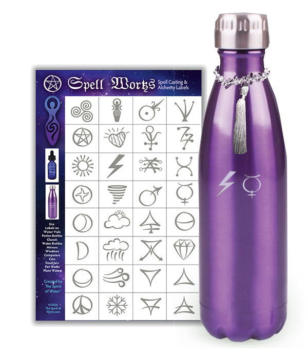 The symbols are printed in metallic silver ink and show up on colored bottles like the ones used for potions and essential oils. Inside the package are descriptions of each symbol and its use. See our other Spell Work products for witchcraft, divination, and mystic conjurings.