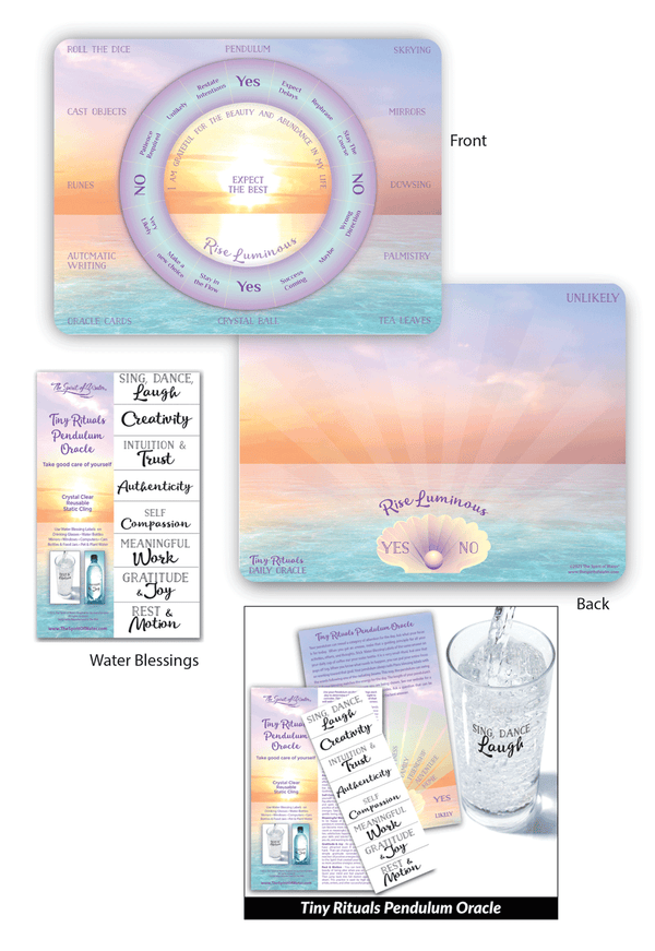 This magical divination tool is easy to use. 8.5" x 11" fits most desktops or lap surfaces. Use one side for answers to your questions. The other side can be used as an oracle for whatever labels you place on the board. The set comes with Tiny Rituals Daily Pendulum Blessings, but you can use symbols, other words, or place tiny totems on the rays. Then let your pendulum show you your most important focus for the day. This set is beautiful to look at and easy to carry with you wherever you travel. It comes with a protective plastic sleeve.