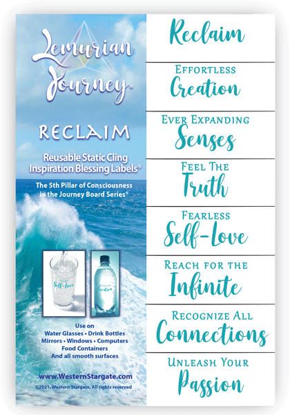 There are five stages of reconnection with Lemurian consciousness and advanced spirituality. This collection features Water Blessings that encourage us to reclaim our Lemurian advanced abilities we connect with our heritage, Motherland, Mu, a place that exists now in the mind and heart, but once existed as terra firma. This reclaiming process is the 5th Pillar of Consciousness used with the Lemurian Journey Board and Game system. Lemuria is a mythological place that is in our hearts and our visions, and yet, when a person explores themselves, they learn they had Lemurian lineage all along. They just forgot. See the other Lemurian Inspirational Labels for advancement through the five stages: Reveal, Remember, Rejuvenate, Resonate, and Reclaim.