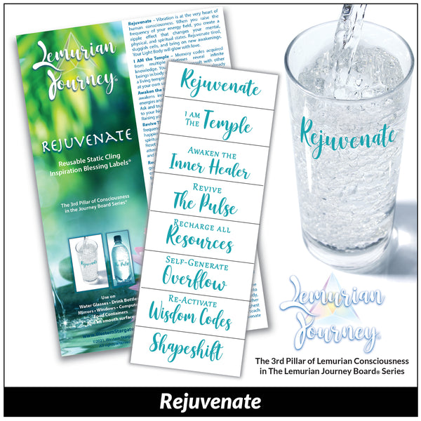 There are five stages of reconnection with Lemurian consciousness and advanced spirituality. This collection features Water Blessings that encourage us to rejuvenate our body-mind-spirit and bring back extraordinary physical abilities in the process. We do this by accessing deep memories of our Lemurian Motherland, Mu, a place that exists now in the mind and heart, but once existed as terra firma. Lemurians are very conscious of the environment and the highest vibrations of all earth-based beings. In order to travel into higher dimensions we must use our love of earth as a foundation for transformation. This rejuvenating process is the 3rd Pillar of Consciousness used with the Lemurian Journey Board and Game system. Lemuria is a dream that remains in our hearts and our visions, and yet, when a person explores themselves, they often learn they were part of the Lemurian lineage all along. Use these words to help you through a deep process of healing and reviving all powers including the reconnection to all earth inhabitants. See the other Lemurian Inspirational Labels for advancement through the five stages: Reveal, Remember, Rejuvenate, Resonate, and Reclaim.