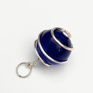 This cobalt glass marble is wire-wrapped in a silver plated spiral. Jump ring is attached. These were used to support an ocean charity called the Blue Marble Ocean Awareness Project in 2013. (started by the author of "Blue Mind") and I still have many available. Perfect for pendulums or pendants. Use them in sun catchers. The rich blue changes the viewer's spiritual perspective about water and its amazing properties just by looking at or into the mysterious blue orb. I realize wire-wrapped marbles are not a precious thing these days, but there is something very precious about the spirit behind these marbles. They raised thousands of dollars for ocean restoration and spiritual awareness of water. They will carry that energy into your creations, for sure!