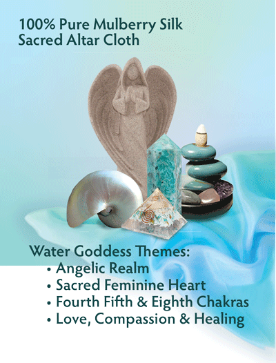 These scarves are elegant, gorgeous, and represent water in a tactile sense as you allow the fabric to flow over your surface. The colors are rich and non-fade. This cloth is woven of 100% pure Mulberry Silk, using ecological kindness and sustainable methods. It is dyed with non-toxic pigments often derived from organic plant matter. The vibe you add to your altar is elevated by using a surface that reflects the true beauty of nature. Build your altar from the ground up. 21" x 21" is a perfect size for table top flat or draping arrangements. Float your scarf on the surface and let the waves and wrinkles become part of the beauty of your sacred space.
