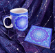 16oz full-colour ceramic mug. Heavy weight and beautifully colored. This mug will remind you of the vast cosmic influences that intersect with all life. You can also apply water blessing labels directly on the design by floating them on with a little water and letting the label make a stronger contact with the ceramic surface.