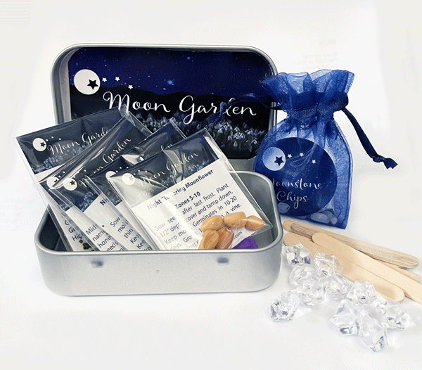 Use this little flower kit to plant a sweet Moon Garden in a favorite spot. Some gardeners plant these flowers near their bedroom window so they can partake of the sweet fragrance throughout the night. Sow seeds in the spring, and enjoy through the fall. Give this kit as a gift to very special moon lovers. Great for planting in-ground or container gardens. All seeds are guaranteed to germinate. Just put your love into your garden. Store the seeds in a cool dry place until you are ready to plant.