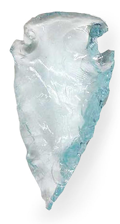 Used as a symbol for Shamanic Journeywork, this aqua recycled glass specimen is a replica of early Mongolian spear and arrow points, which were later adopted hundreds of thousands of years ago by indigenous natives all over the world. It represents the strength of survival (hunting), the clarity of water (ocean), the will of intention, and the speed of manifestation. When a mystic or shaman journeys into other worlds, their intention is their strongest and greatest ally. It must always be sharp and single-focused. Journeyers become hunters of truth and expect their arrow point to lead them to their target.