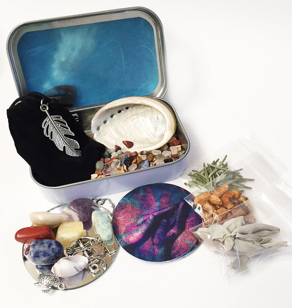 This Tiny Altar kit has everything you need to conduct a shamanic healing ritual or visionary journey. It comes with: