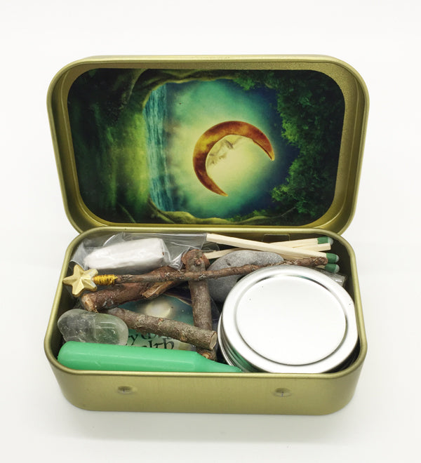 This tiny realm of fairy folk is an enchanting experience of magic and mysticism for little places, or while traveling. Never leave your fae at home alone. Take all the magic with you. In this pocket kit you will find: