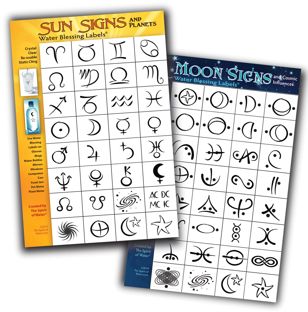 Enhance your energies with the special influences of the planets and all cosmic star systems by using these symbols on your water. You can use a pendulum to divine which to use, or feel the significant vibrations they resonate to you. Everything has its place in the universe and these symbols honor those special locations in your chart and in your life.