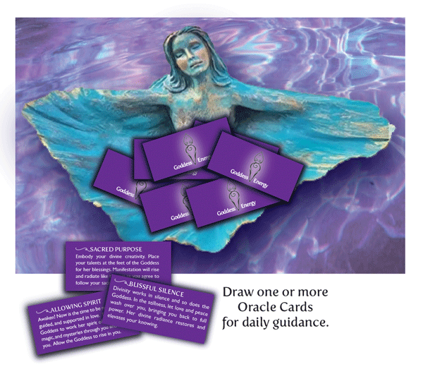 The power of the Sacred Feminine is always with us and we can call upon it at any time. We refer to this source as Goddess Energy; and it is something that is easily accessed by all who relate to the divinity and heart essence of the human female. Goddesses are wise, strong, and expressive. They are creator spirits who know how to make new realities happen. Because of their sensuous nature and the desire to experience all the gifts this world presents, a Goddess celebrates her life in the most elegant and dramatic ways in order to feel all the energies available through earth elements and spirit sources. Using these words and ideas, invite the Divine Goddess to live in your reality and watch how abundance flows through art, creativity, prosperity, relationships and opportunities. Let your own Goddess rise as you feel your power rise and shine like the full moon.
